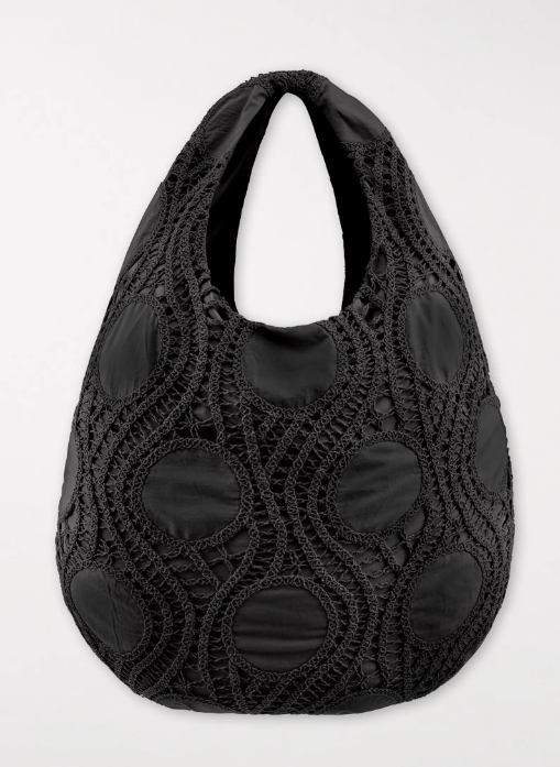 Offene Baumwolltasche mit aufwendig gearbeiteten Häkeldetails für einen sommerlichen Look. Die Tasche ist gefüttert und besitzt zwei breitere Schulterträger.