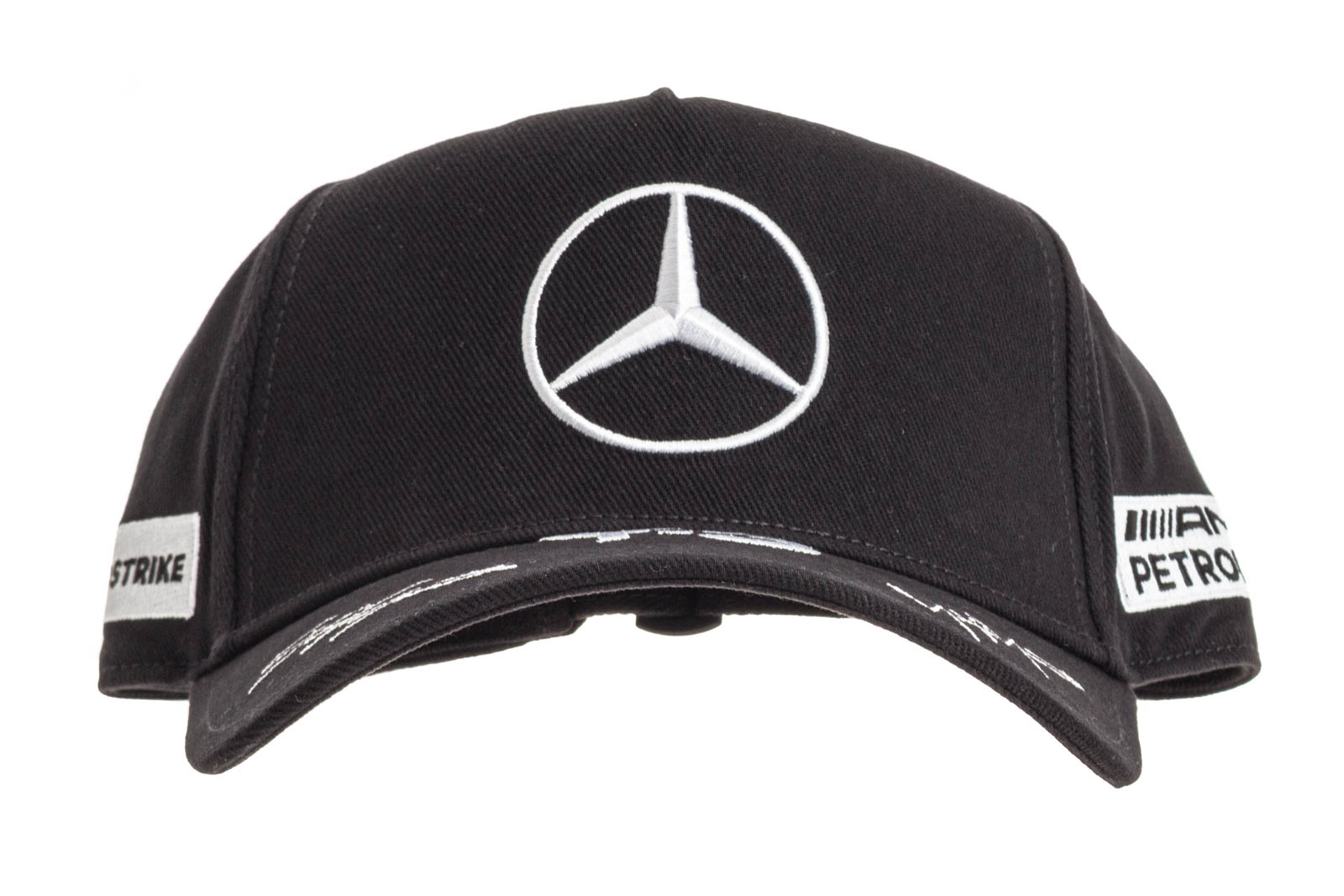 Mit aufgesticktem Mercedes-Benz Stern und seitlichem AMG Petronas Stick.