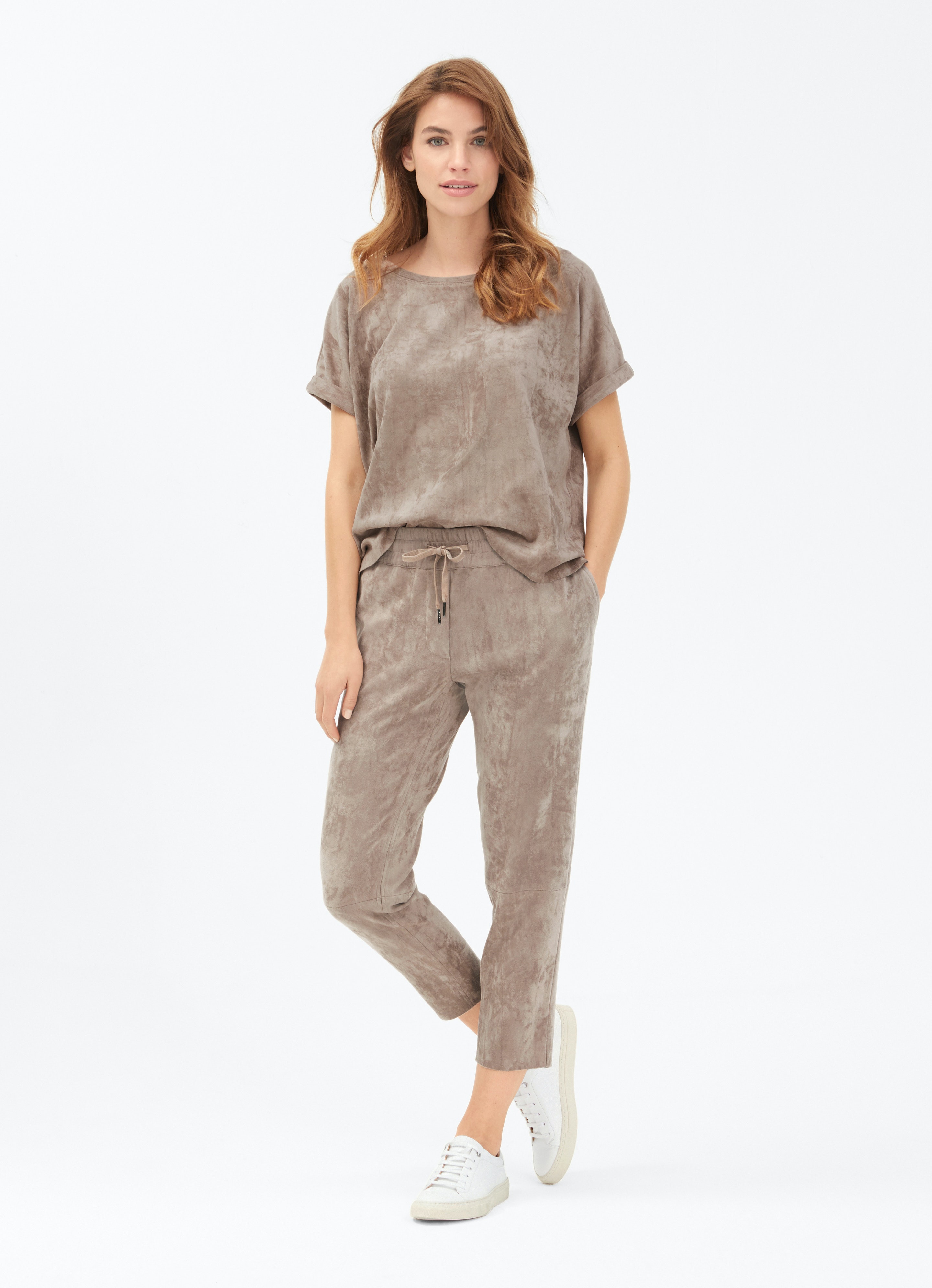 Lässig geschnittene Sweathose in eleganter Tech-Velours Qualität. Dazu passend JUVIA Sweatshirt FAUX SUEDE BOXY SHIRT, Art.Nr.: 810 17 216 279.