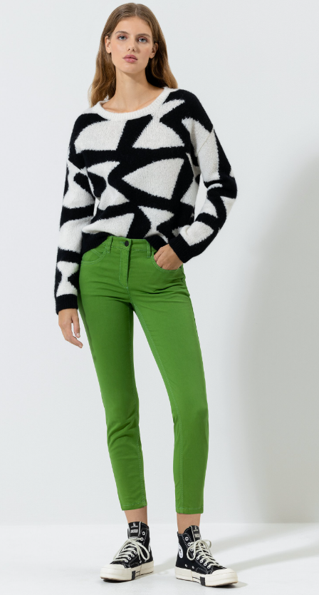 Schmal geschnittene Hose mit verkürztem Bein und raffinierten Nahtdetails. Das weiche Stretchmaterial und der teilelastische Bund machen die Hose zu einem komfortablen Kleidungsstück mit Wohlfühlfaktor.