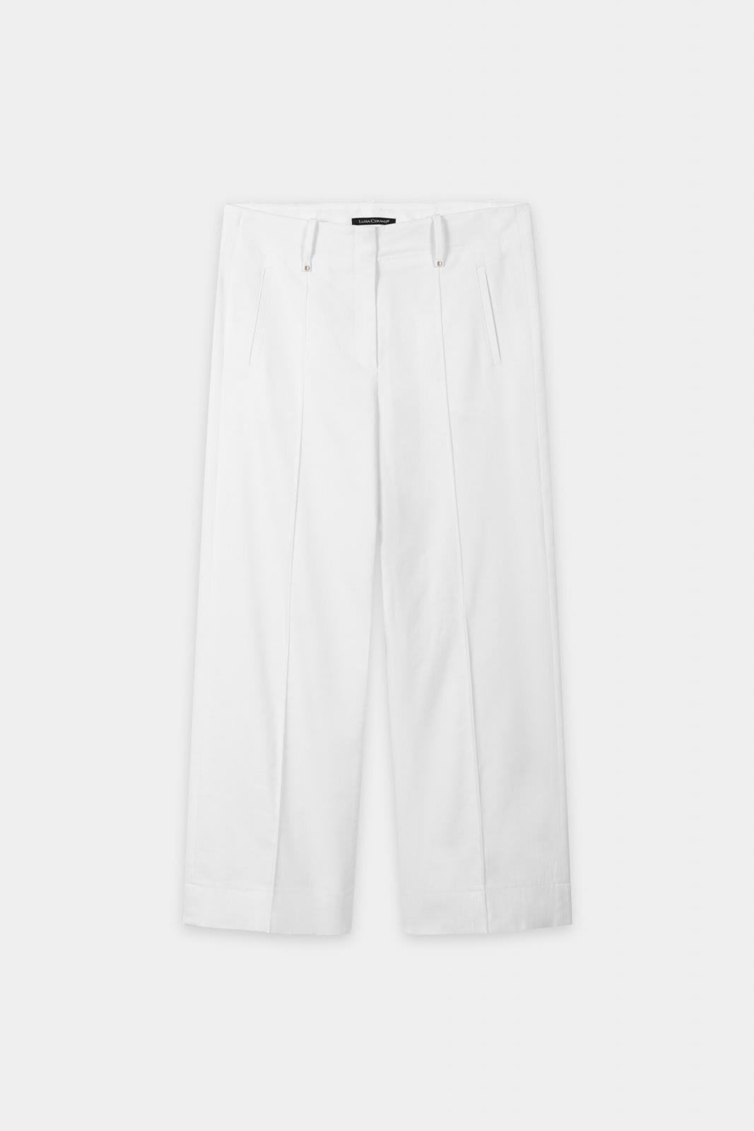 Locker geschnittene Hose mit leicht verkürztem Bein aus softem Baumwoll-Viskose-Stretch. Die Hose verfügt über Gürtelschlaufen mit Nietendetails, zwei angedeutete Fronttaschen und zwei aufgesetzte Gesäßtaschen.