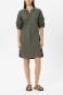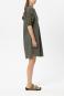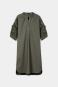 Mittellanges Kleid aus reiner Baumwolle mit schmalem Stehkragen und V-Ausschnitt. Die kurzen, voluminösen zeigen eine aufwendige Lochstickerei und sind mit Blüten besetzt. Durch die gelegte Falte auf der Vorderseite entsteht ein legerer Fall.
