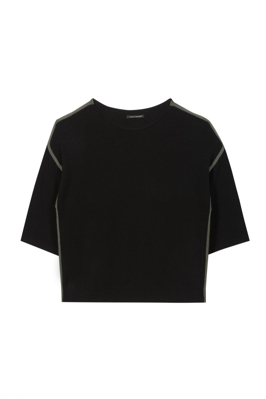 Locker geschnittener Pullover aus weichem Kaschmir-Mix mit Rundhalsausschnitt und halblangen Fledermausärmeln. Farblich abgesetzte Streifendetails setzen sportive Akzente.
