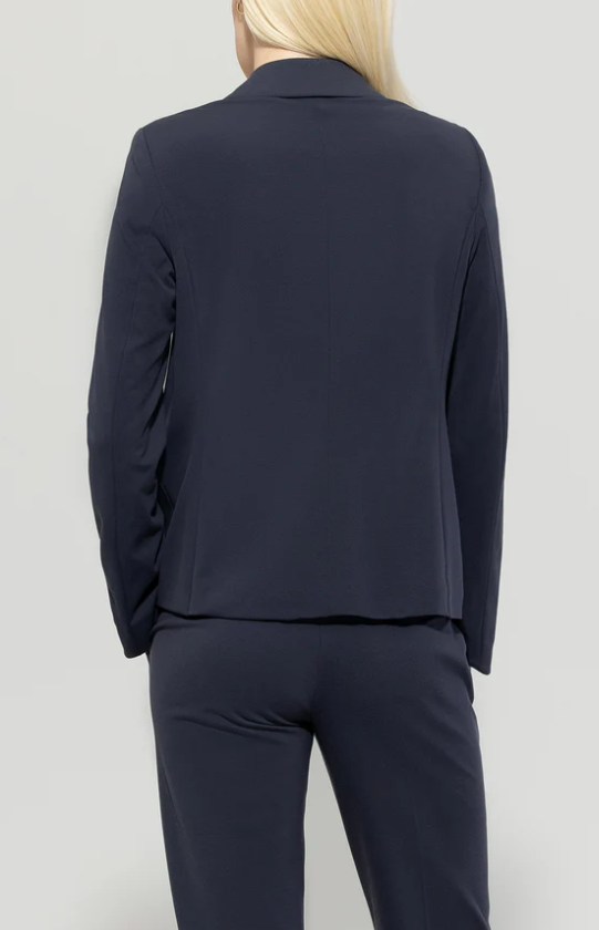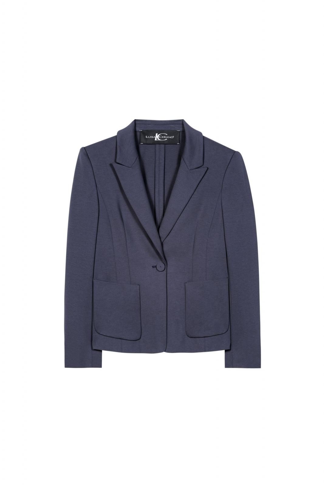 Moderner Einknopf-Blazer aus weichem Punto-Milano-Gewebe. Ein Reverskragen und zwei aufgesetzte Taschen runden das Design ab.