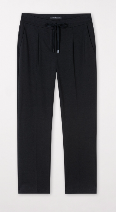 Sportive Joggpants aus Punto-Milano-Gewebe mit Bundfalten und schmal zulaufendem Bein. Der Bund kann zusätzlich durch einen Kordelzug reguliert werden.