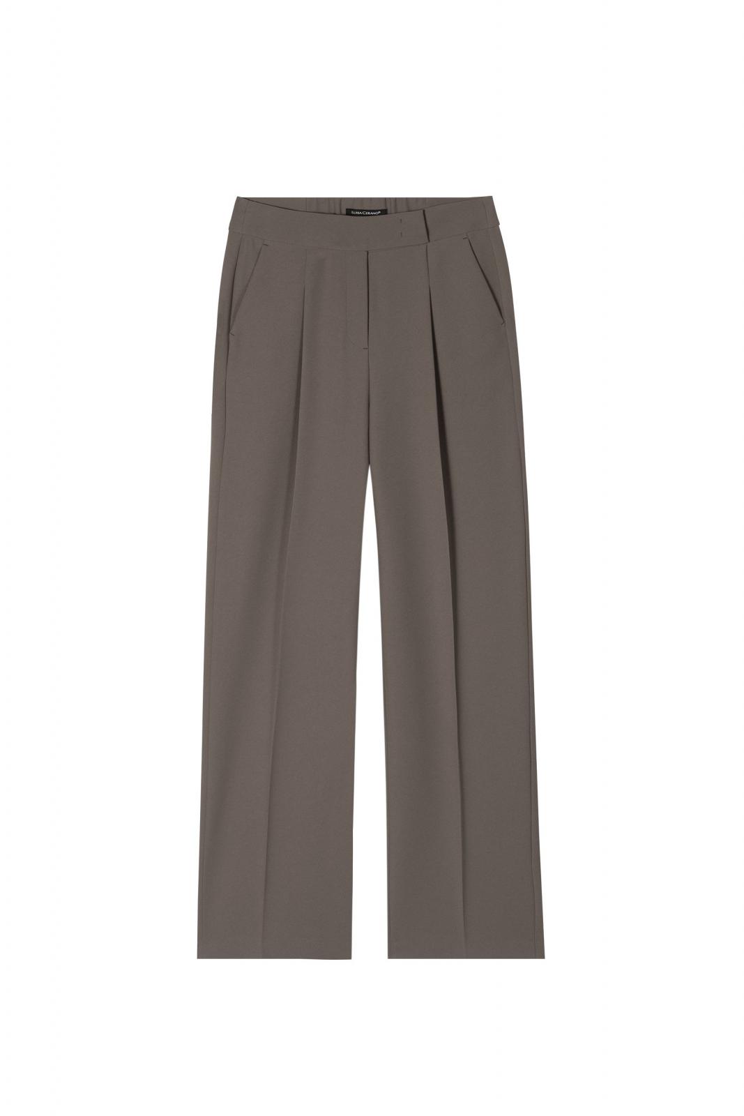 Wideleg-Pants mit schlichter Eleganz dank des fließendem Techno-Crêpe und der Bundfalten. Die Hose verfügt über zwei seitliche Eingrifftaschen und zwei angedeutete Gesäßtaschen mit Patten.