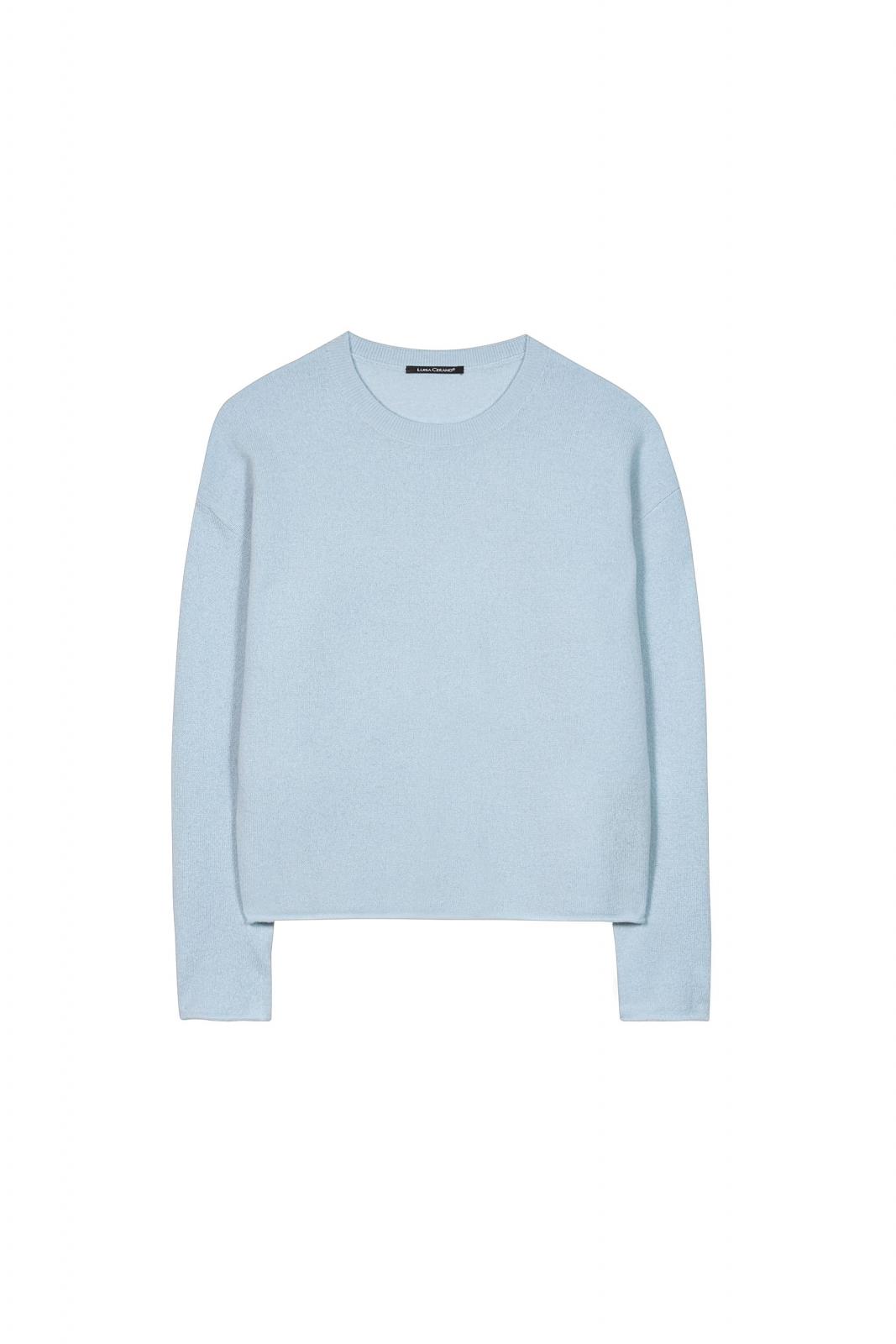 Weicher Pullover aus dünnem Strickmaterial mit Kaschmiranteil. Das Design besticht durch leicht überschnittene Schultern sowie einen gerippten Rundhalsausschnitt und Rollkäntchen an Saum und Ärmeln.