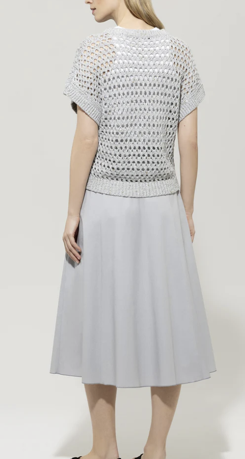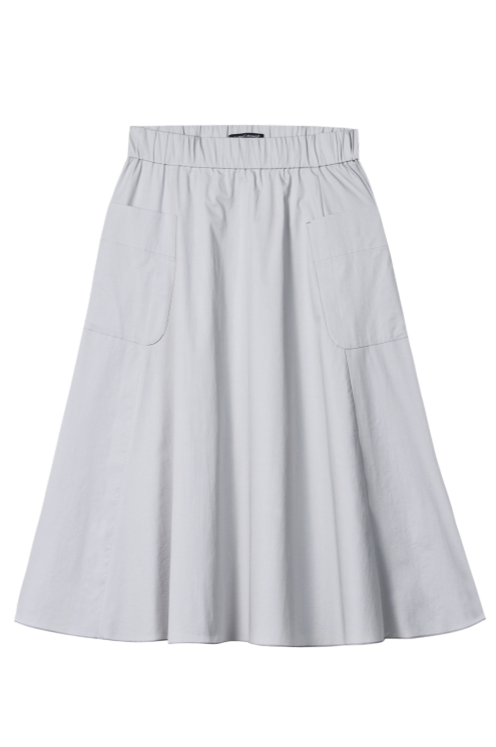 Weit ausgestellter Rock aus leichtem Gabardine-Bi-Stretch. Ein breiter Gummibund und zwei große, aufgesetzte Taschen unterstreichen den sportiven Style.