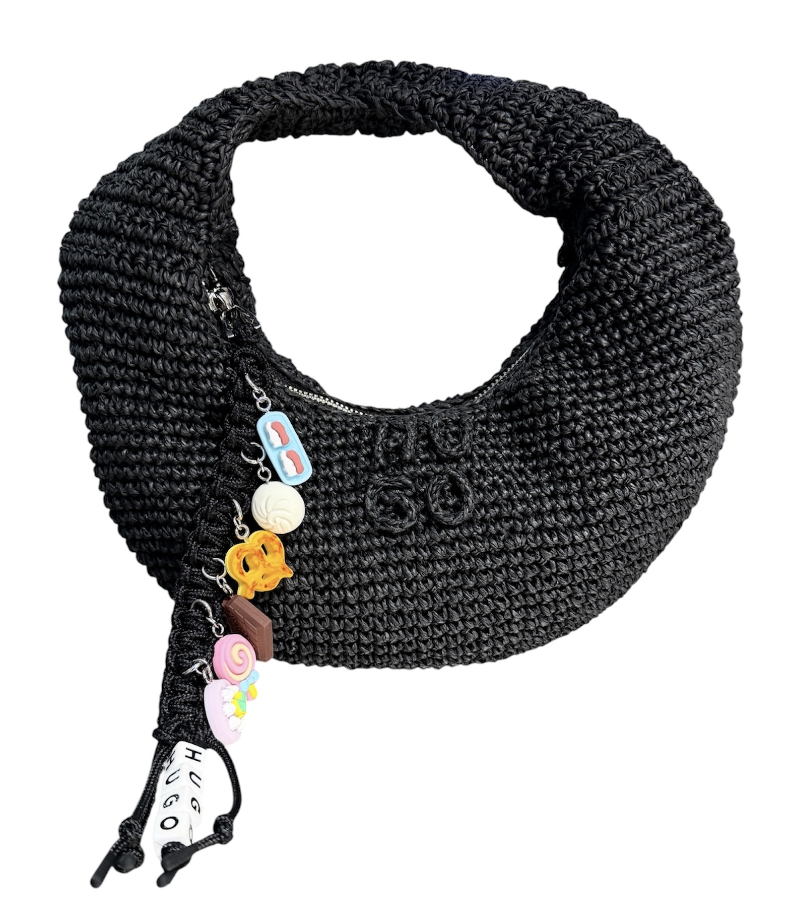 Die HUGO Hobo Bag mit gewebter Struktur und Stack-Logo verleiht deinen Everyday-Looks mehr Wirkung. Geflochtener Reißverschluss-Schieber mit verspielten Anhängern.