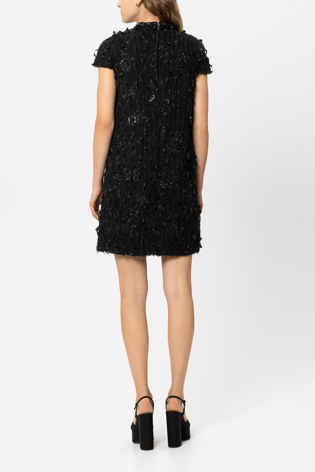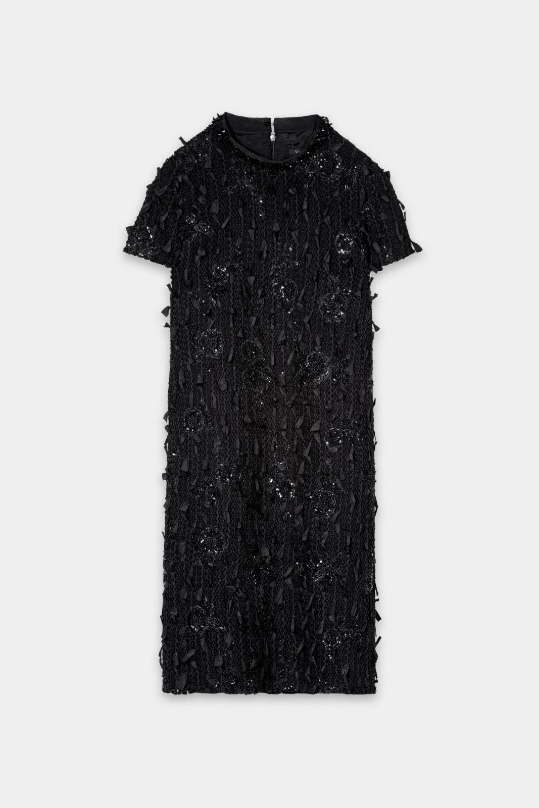 Elegantes Kleid mit Perlenbesatz und kurzem Arm.
