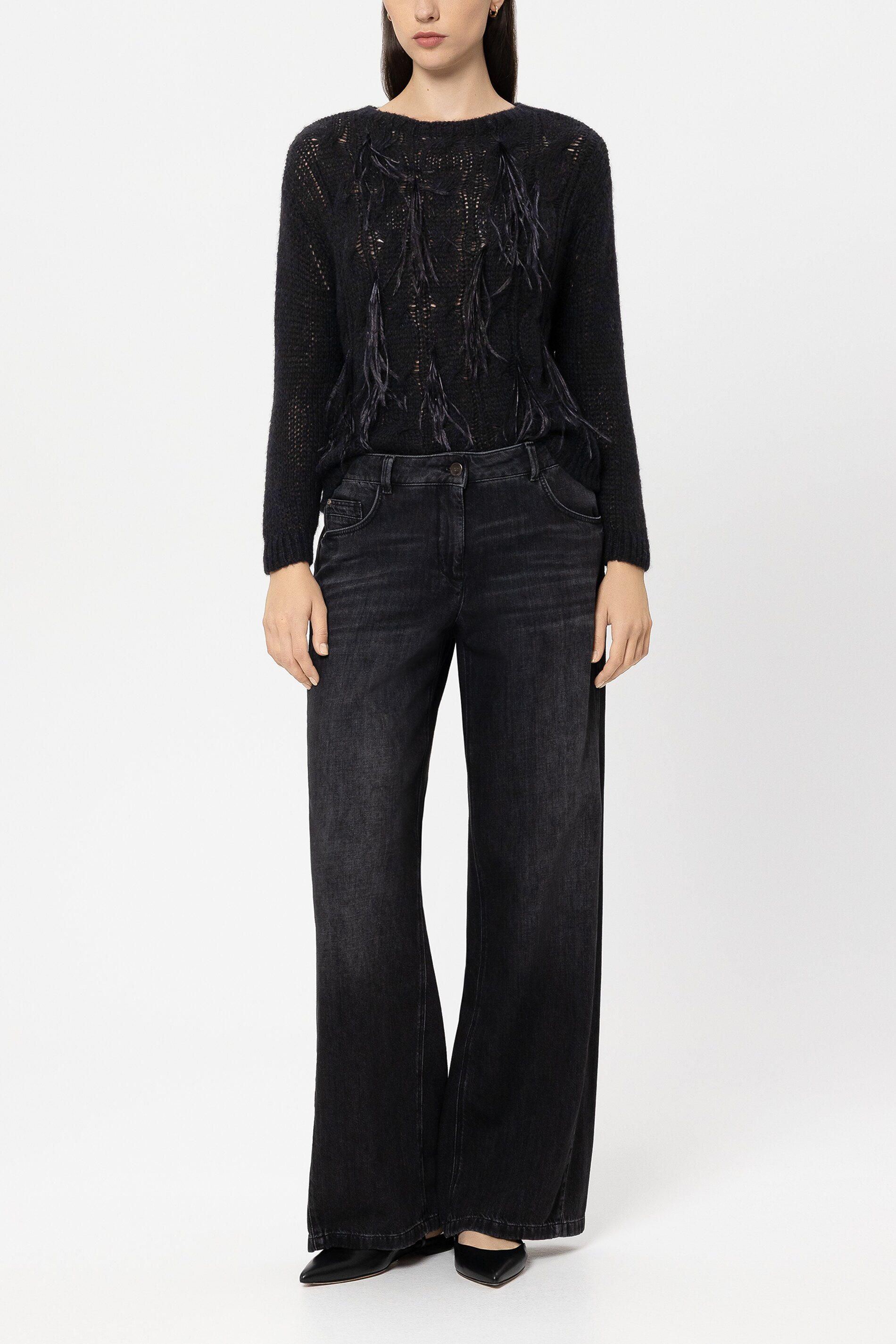 Strickpullover aus besonders weicher Alpaka-Woll-Mischung in luftig-leichter Airspun-Verarbeitung mit Zopfmuster und Rundhalsausschnitt. Für echte Wow-Effekte sorgen die in Handarbeit applizierten Federn.