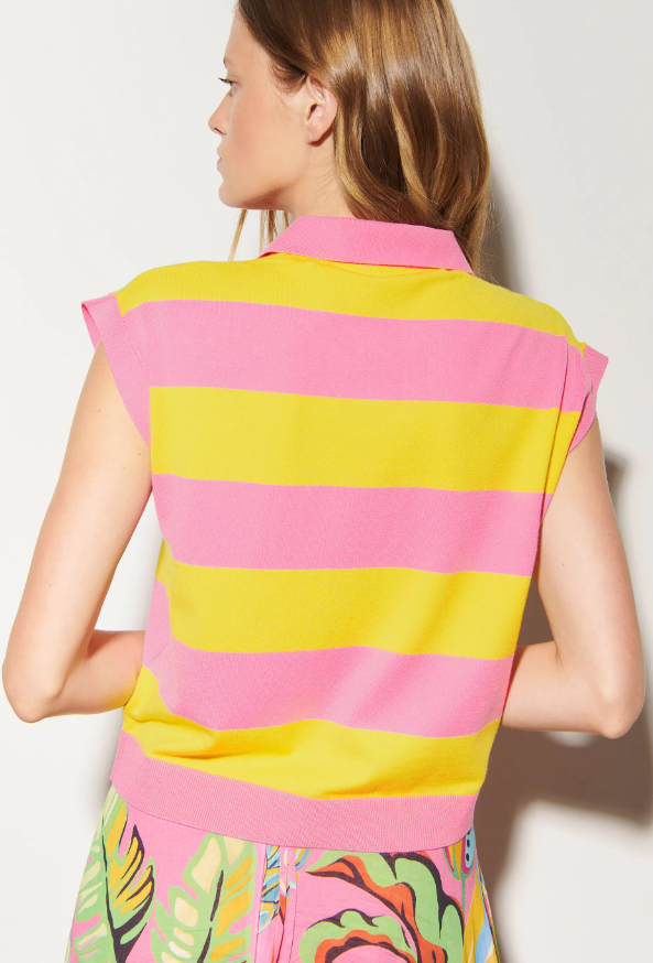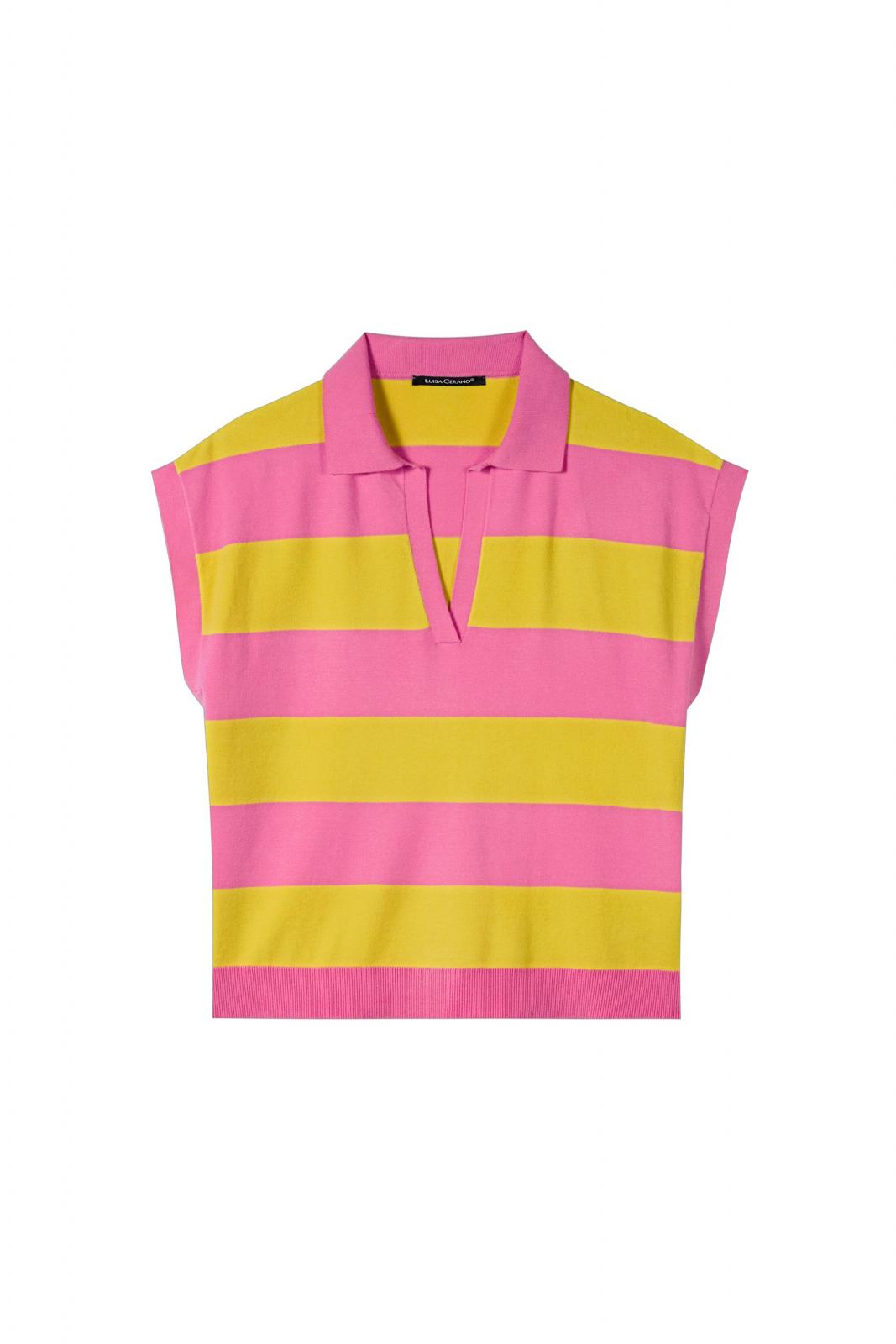Pullunder aus weichem Stretchmaterial mit Lenzing™ Ecovero™-Viskose. Das Design besticht durch breite Blockstreifen sowie einen V-Ausschnitt mit Polokragen und einen Rippabschluss am Saum.