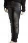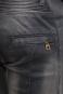 Schmall geschnittene Biker-Jeans mit goldenen Knöpfen.