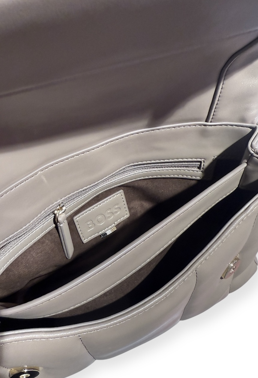Die BOSS Umhängetasche mit gestepptem Design und Double-B-Monogramm aus Metall ist ein markantes Accessoire. Verstellbarer Kettenriemen. Die Maße: 24,5 x 16,0 x 8,0 Zentimeter.