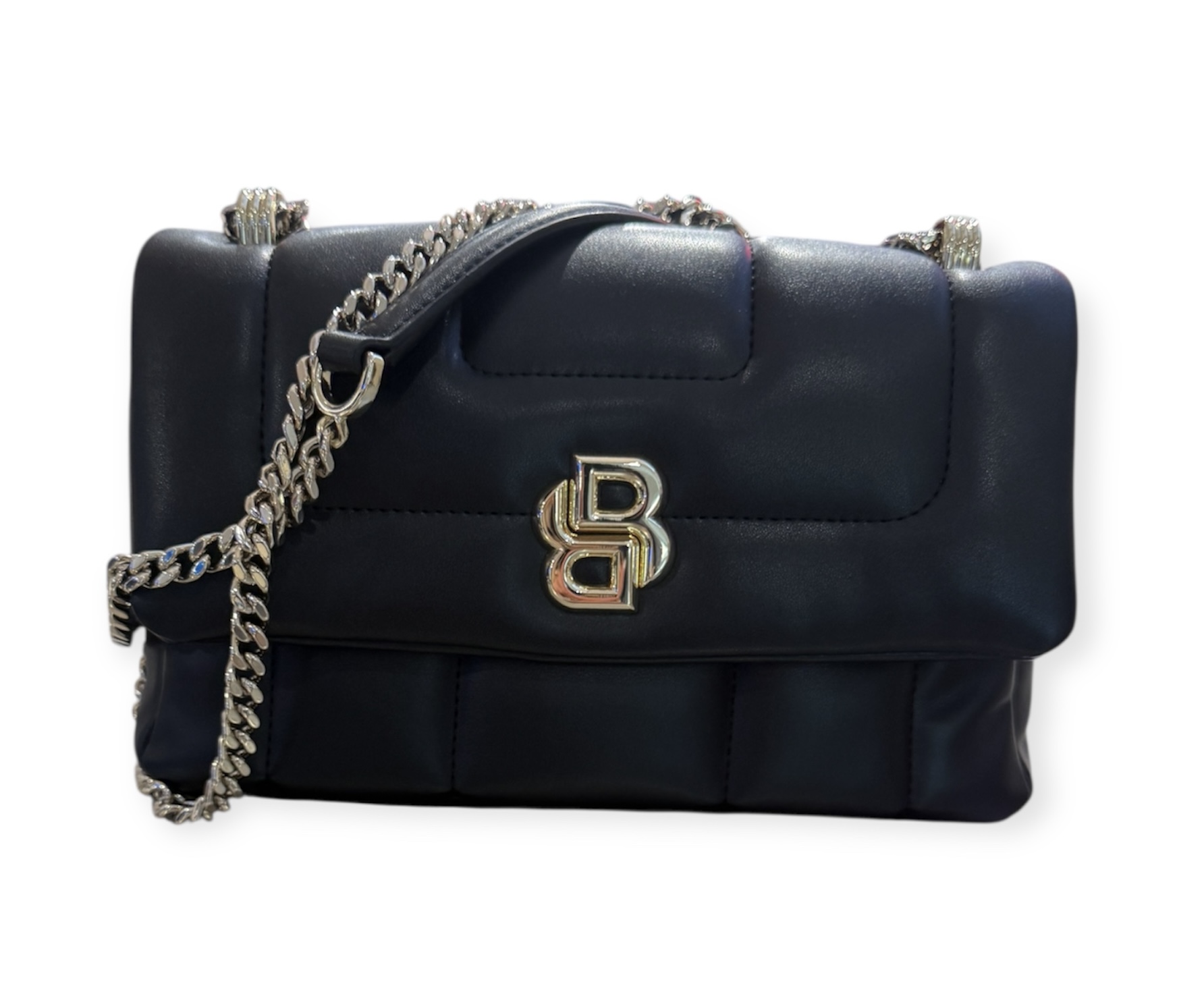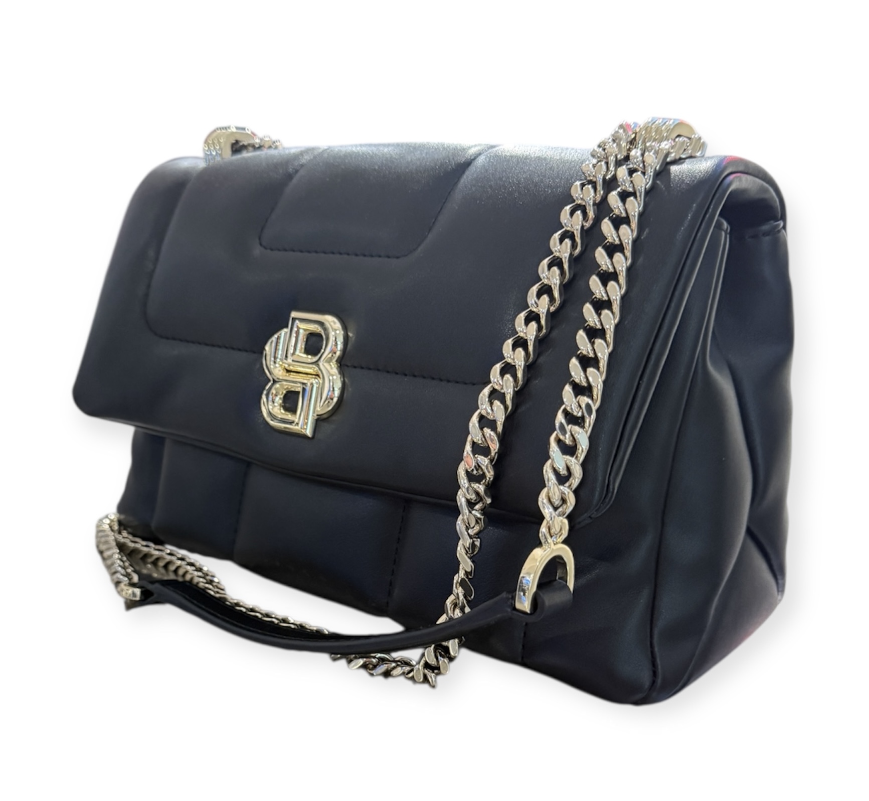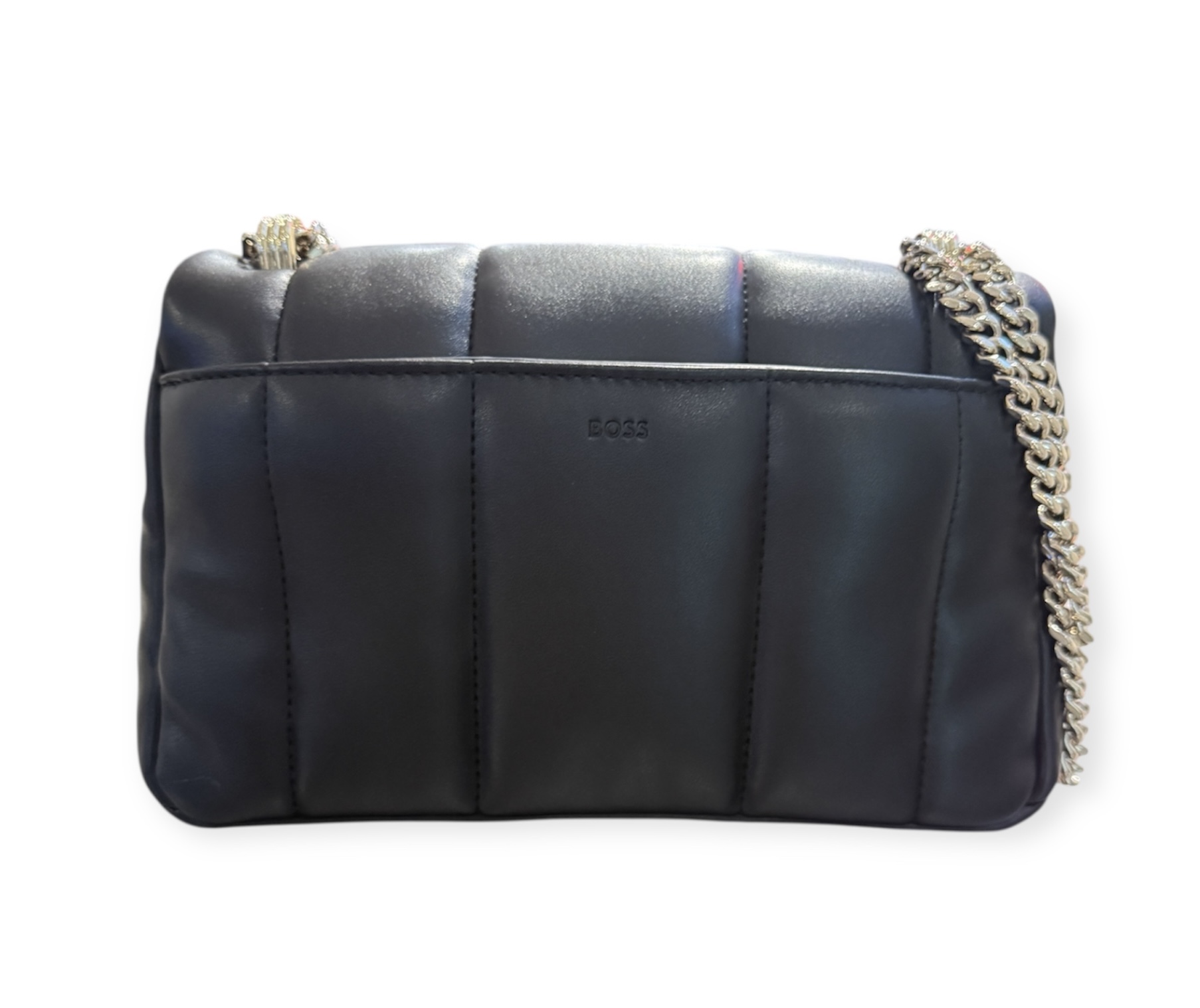 Die BOSS Umhängetasche mit gestepptem Design und Double-B-Monogramm aus Metall ist ein markantes Accessoire. Verstellbarer Kettenriemen. Die Maße: 24,5 x 16,0 x 8,0 Zentimeter.