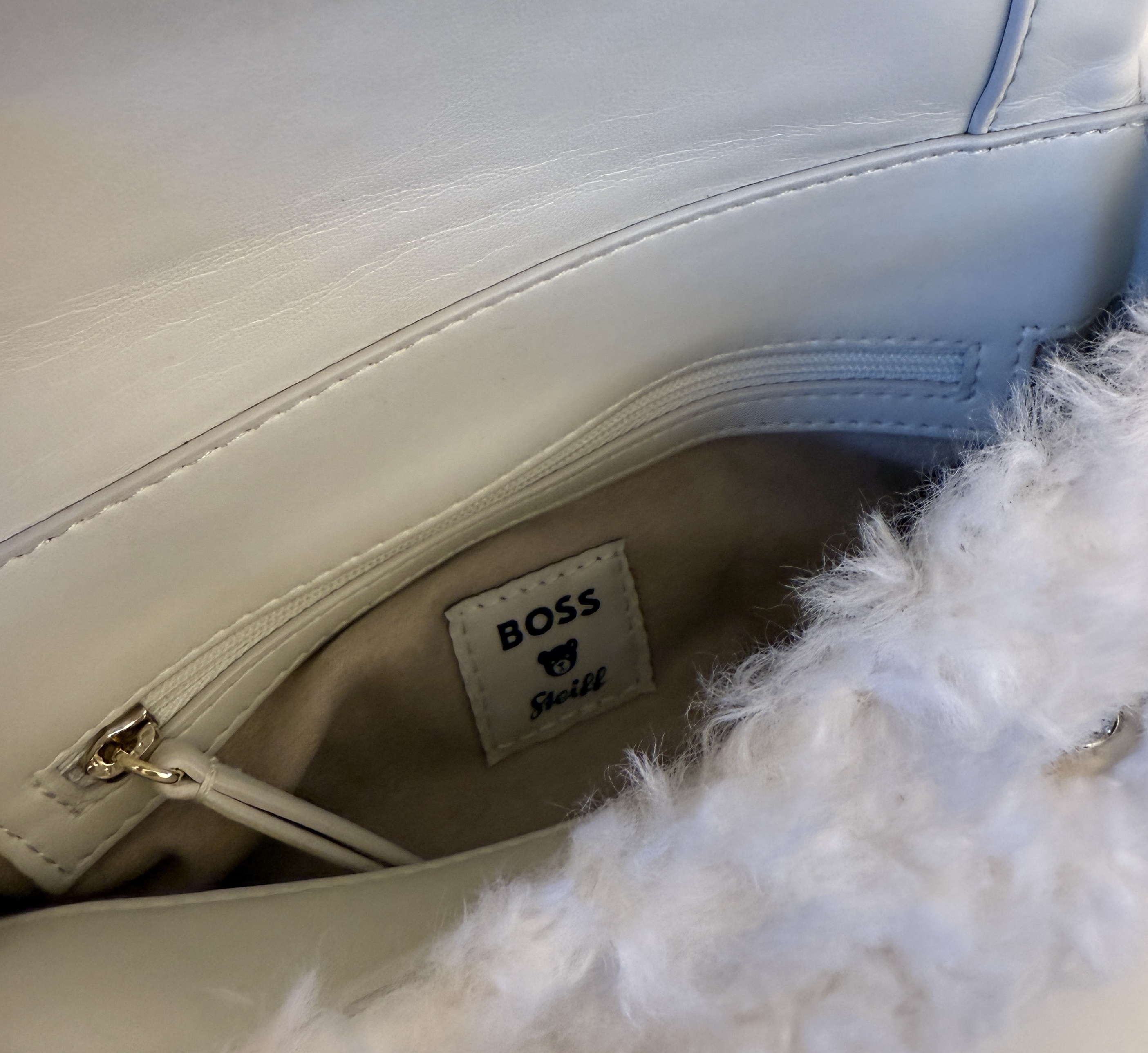 Setzt ein Statement: Die BOSS x Steiff Bag ist von den berühmten flauschigen Teddybären von Steiff inspiriert. Sie ist aus weichem Teddy-Gewebe mit Woll-Anteil gefertigt und hat ein goldfarbenes Logo und einen doppelten Kettenriemen für vielseitige, komfortable Tragemöglichkeiten.