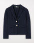 Feminin geschnittener Blazer aus Punto Milano. Die teilweise gefütterte Jacke besitzt einen Reverskragen, einen Zwei-Knopf-Verschluss und aufgesetzte Pattentaschen.