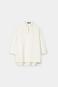 Gerade geschnittene, sportive Tunikabluse aus elastischer Viskose mit Stehkragen, tiefem Ausschnitt und verlängerter Rückseite. Der Saum und der doppelt gearbeitete Abschluss der halblangen Ärmel sind seitlich geschlitzt.