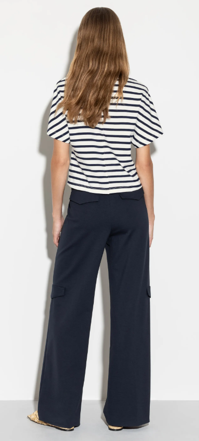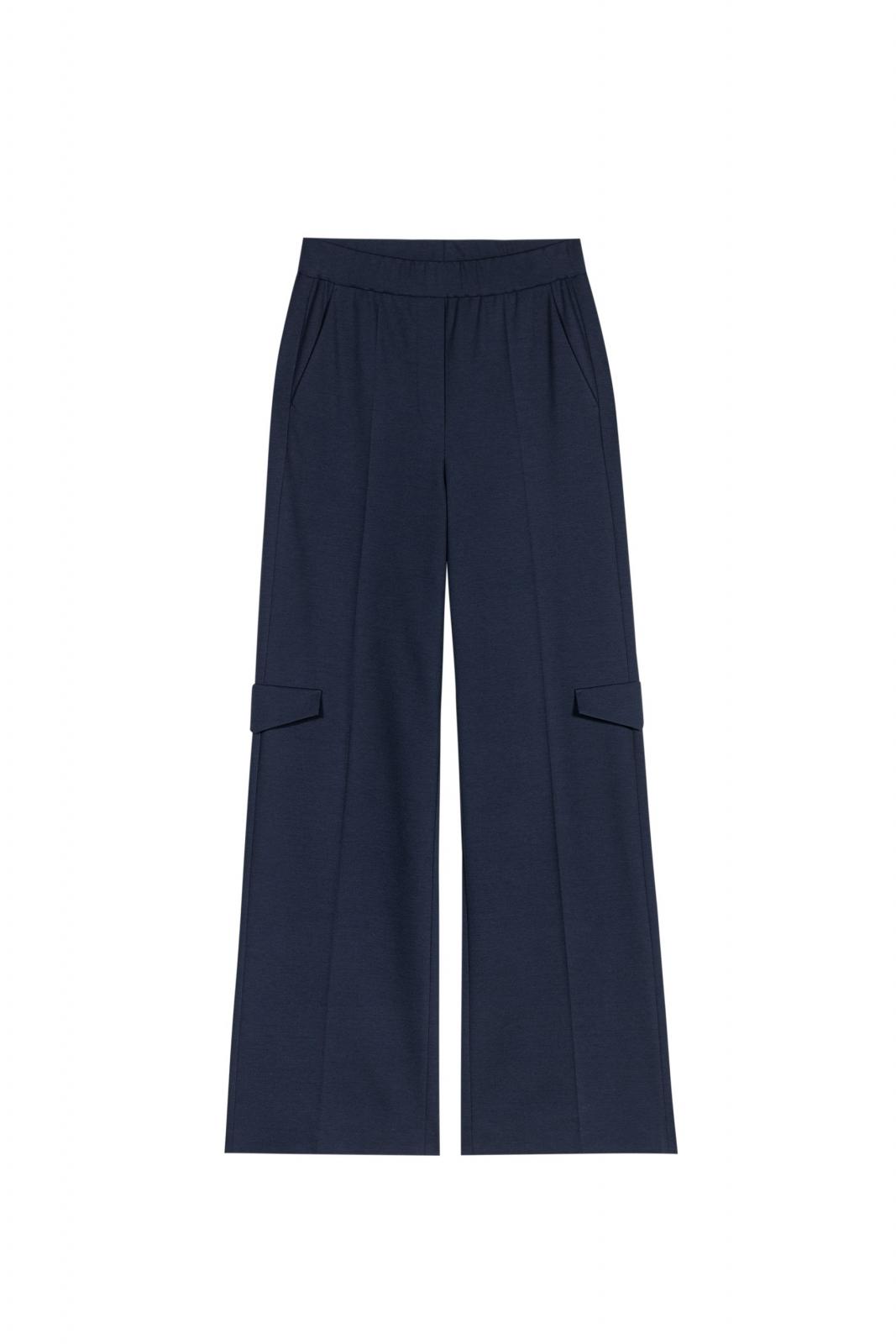 Weit geschnittene Hose mit seitlichen Eingrifftaschen und angedeuteten Cargo-Elementen. Der elastische Bund und das weiche, elastische Punto-Milano-Material machen die Hose besonders bequem.