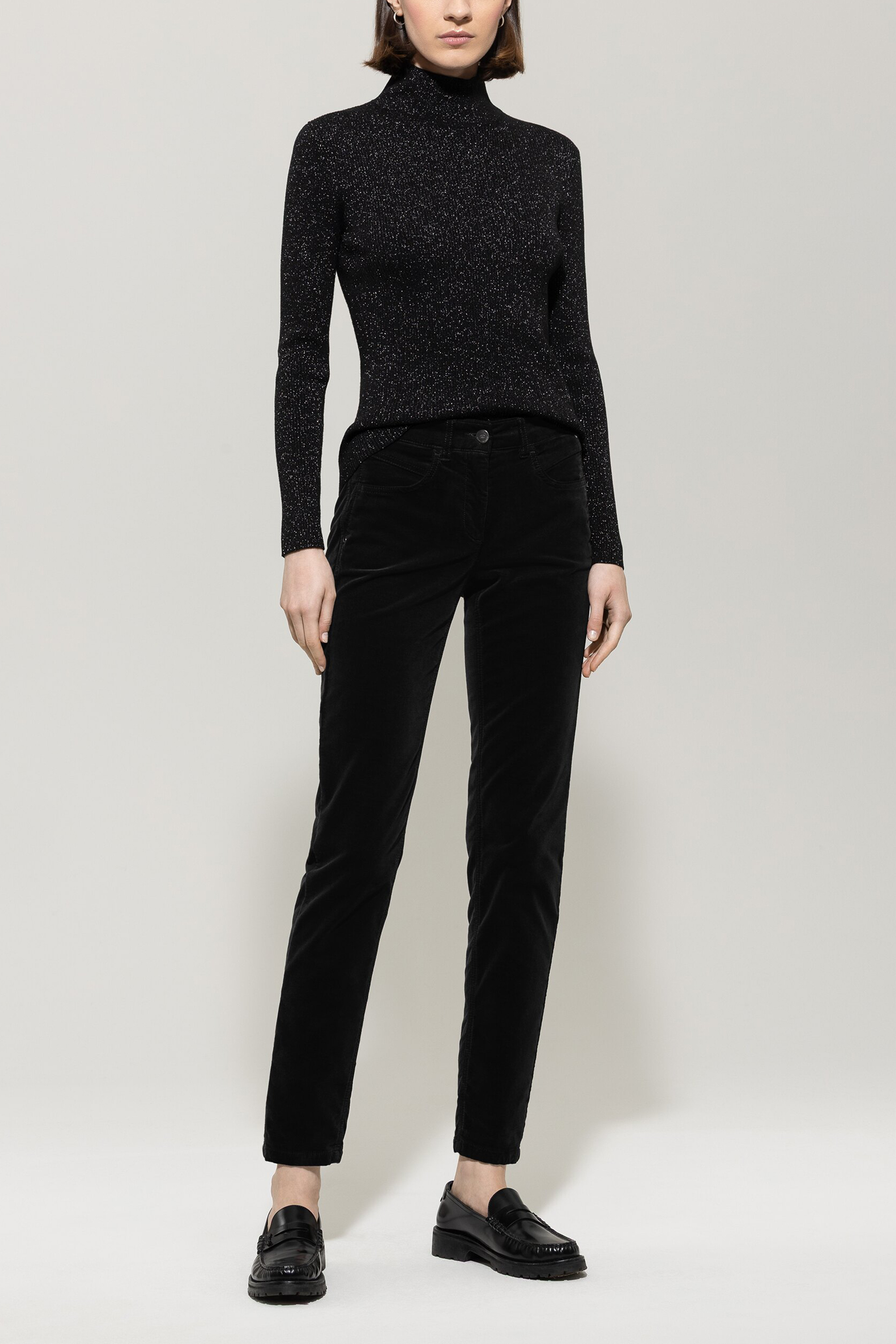 Cropped-Pants mit teilelastischem Bund aus hochwertigem Waschsamt. Die spezielle Nahtführung mit Einsätzen an der Hüfte zaubert eine besonders schmale Silhouette.