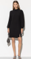 Gerade geschnittenes Minikleid aus fließender Techno-Crêpe-Seide mit leichten Ballonärmeln. Das Kleid besitzt einen gerafften Stehkragen, geknöpfte Manschetten sowie einen Schlitz auf der Vorderseite.
