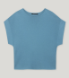 Fein gestrickter Pullover aus kreppiger Baumwoll-Mischung mit Links-Struktur und überschnittener Schulterpartie. Die kurzen Ärmel sind weiter geschnitten und haben eine breit angesetzte Saumkante.