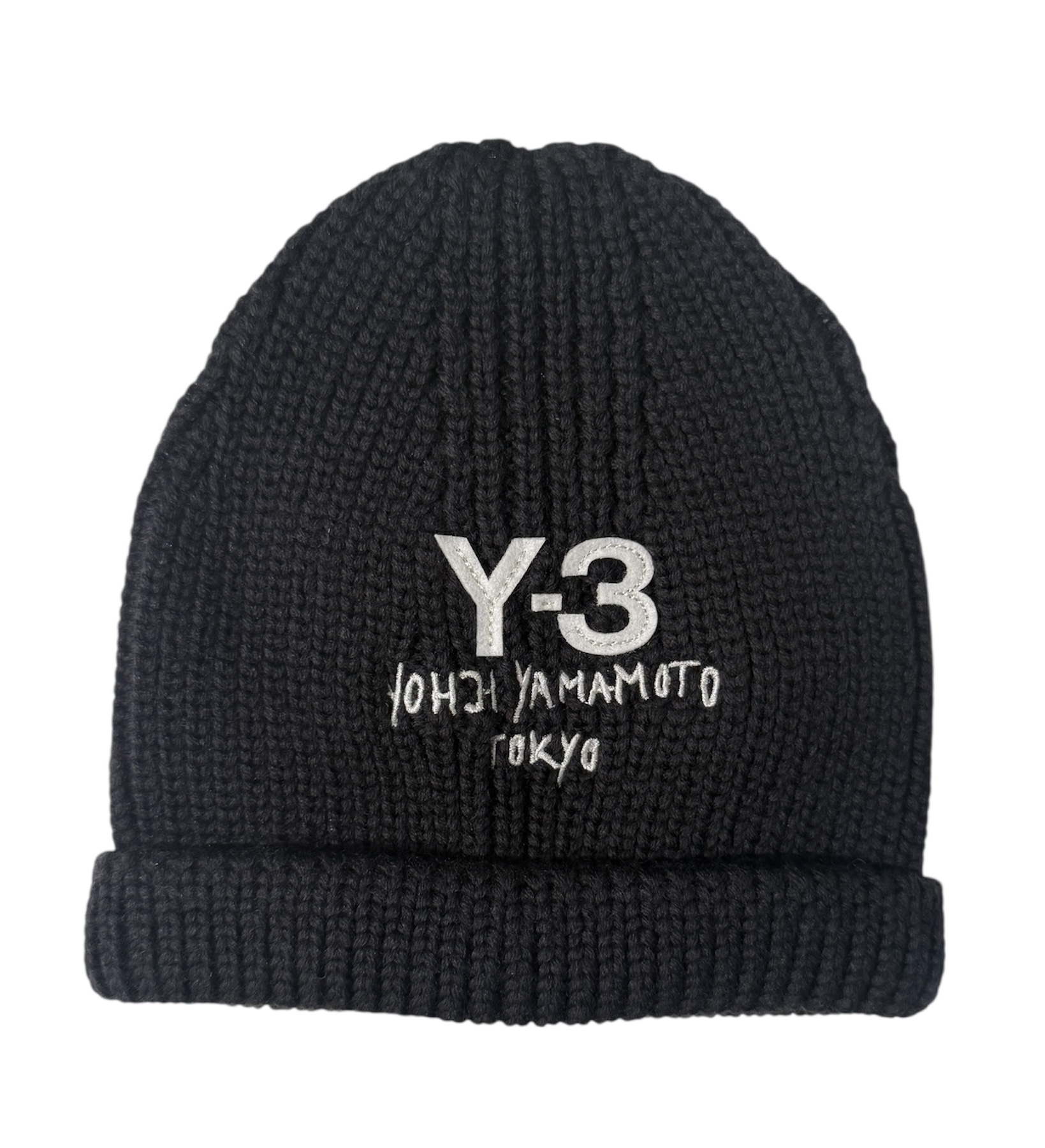 Stylische Strickmütze mit aufgesticktem Y-3 Filzlogo.